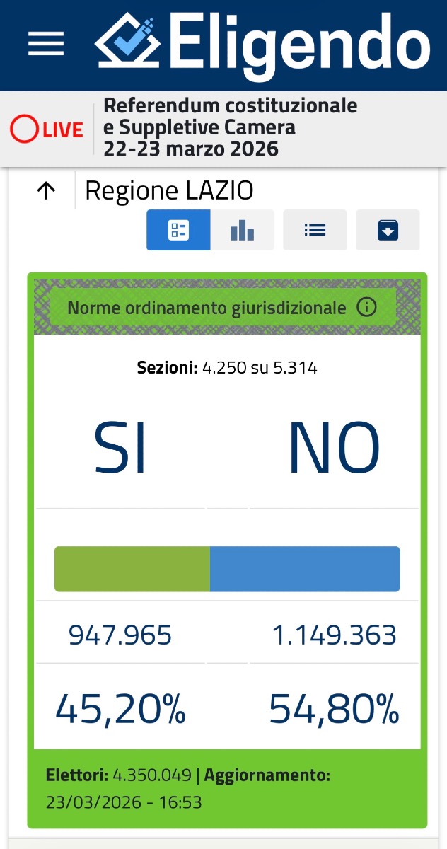 Referendum giustizia, anche nel Lazio vince il “no”.