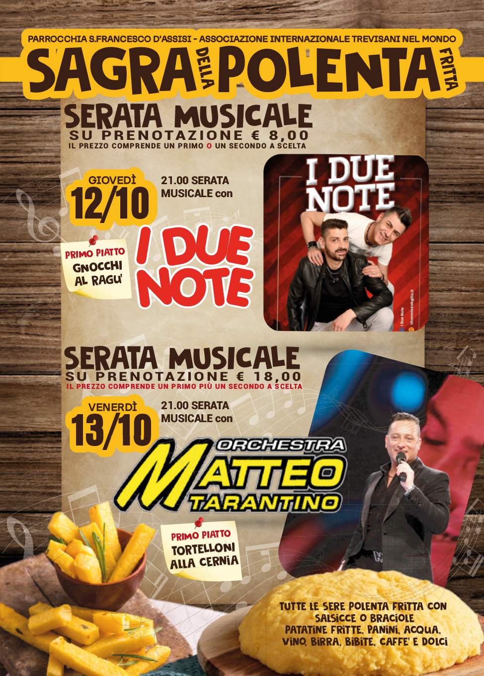 La manifestazione, alla sua prima edizione, è organizzata dalla Parrocchia San Francesco D’Assisi e dalla sezione di Latina dell’associazione internazionale “Trevisani nel Mondo. Le serate di festa si svolgeranno in una struttura di 800 metri quadri, per una capienza massima di 600 persone.