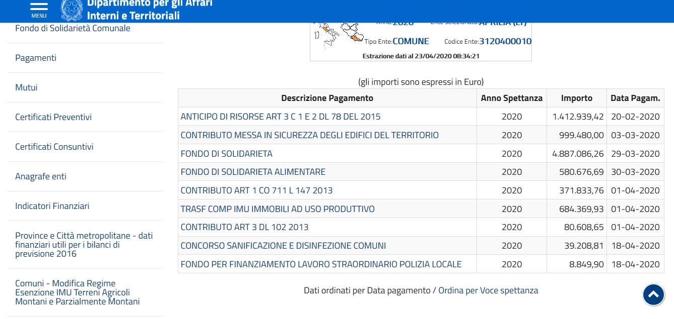 La pulizia ordinaria delle strade è un servizio che il Comune ha già pagato alla Progetto Ambiente, mentre l’attività di sanificazione richiesta da uno dei decreti del Presidente del Consiglio dei Ministri è un'attività straordinaria, per la quale il Ministero dell’Interno ha stanziato 40.000 €.