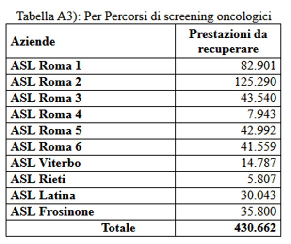 Infine, la Regione Lazio oltre a garantire le risorse economiche per il recupero dei ricoveri ospedalieri e delle prestazioni di specialistica ambulatoriale e di screening prevede l’incremento del monte ore di assistenza specialistica ambulatoriale convenzionata interna.