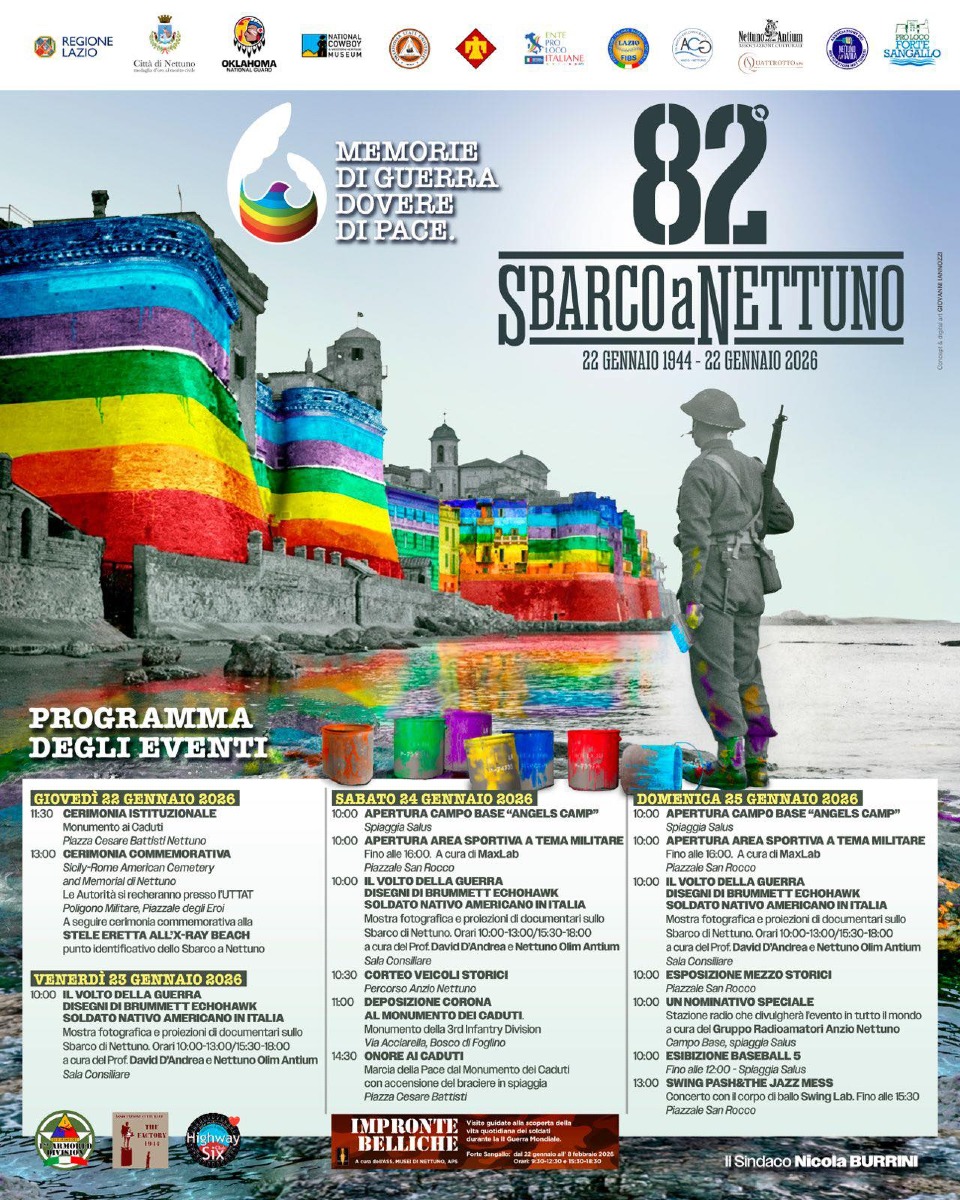 Sbarco Alleato, gli appuntamenti di questo fine settimana a Nettuno per l’82esimo anniversario. Dopo le cerimonie istituzionali del 22 gennaio, si entra nel vivo della rievocazione storica, con iniziative culturali, educative e sportive sul territorio.