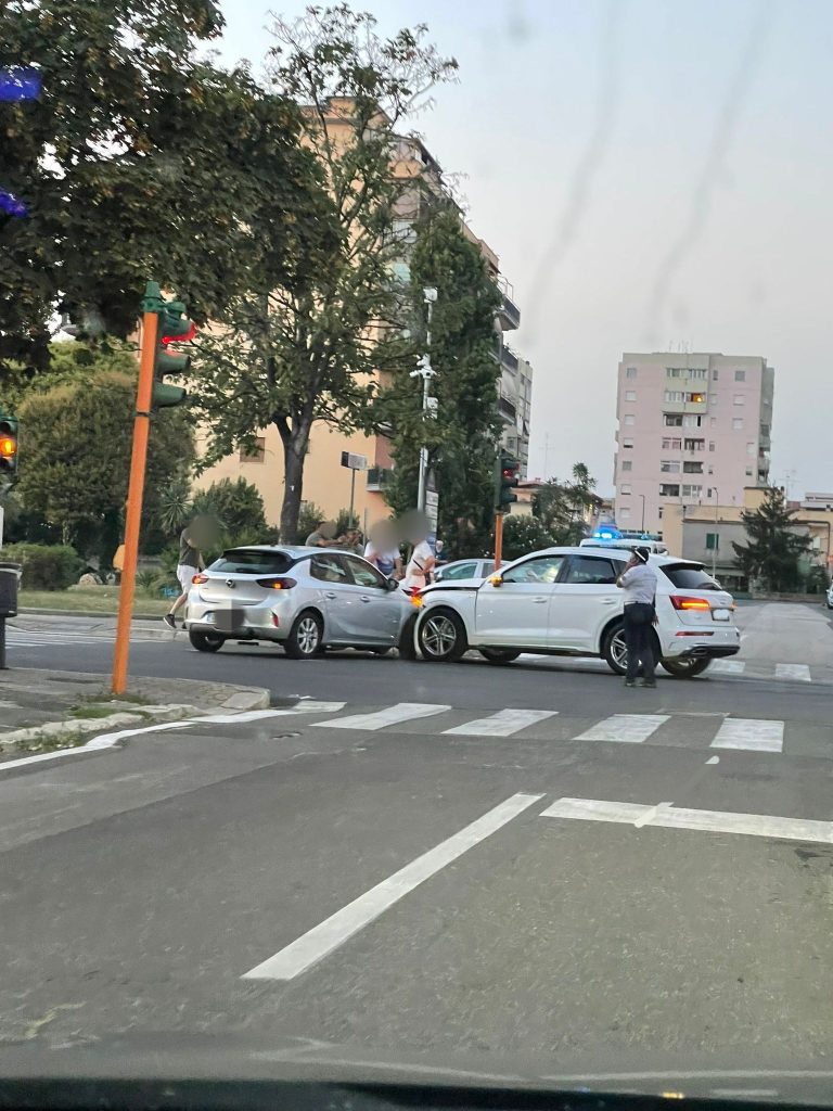 Scontro in pieno centro ad Aprilia, all'incrocio tra via De Gasperi e via delle Palme.
