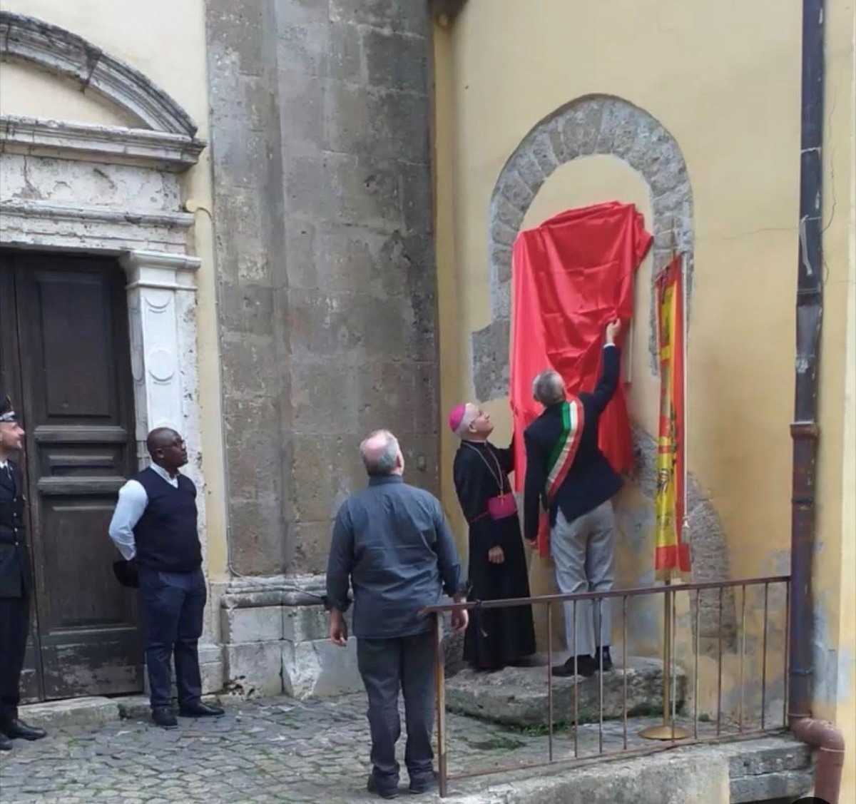 La lapide commemorativa è stata svelata per mano del sindaco di Cori, Mauro De Lillis, e del vescovo di Latina, Mariano Crociata, presenti anche i familiari, in particolare il fratello Silvio, l’assessore al Bilancio, Simonetta Imperia, il comandante della stazione Carabinieri di Cori, maresciallo Luca Cuoco, la comandante della Polizia locale, Lidia Cioeta, il parroco don Gianpaolo Bigioni, Padre Leon Mba Mba, rettore del Santuario della Madonna del Soccorso.