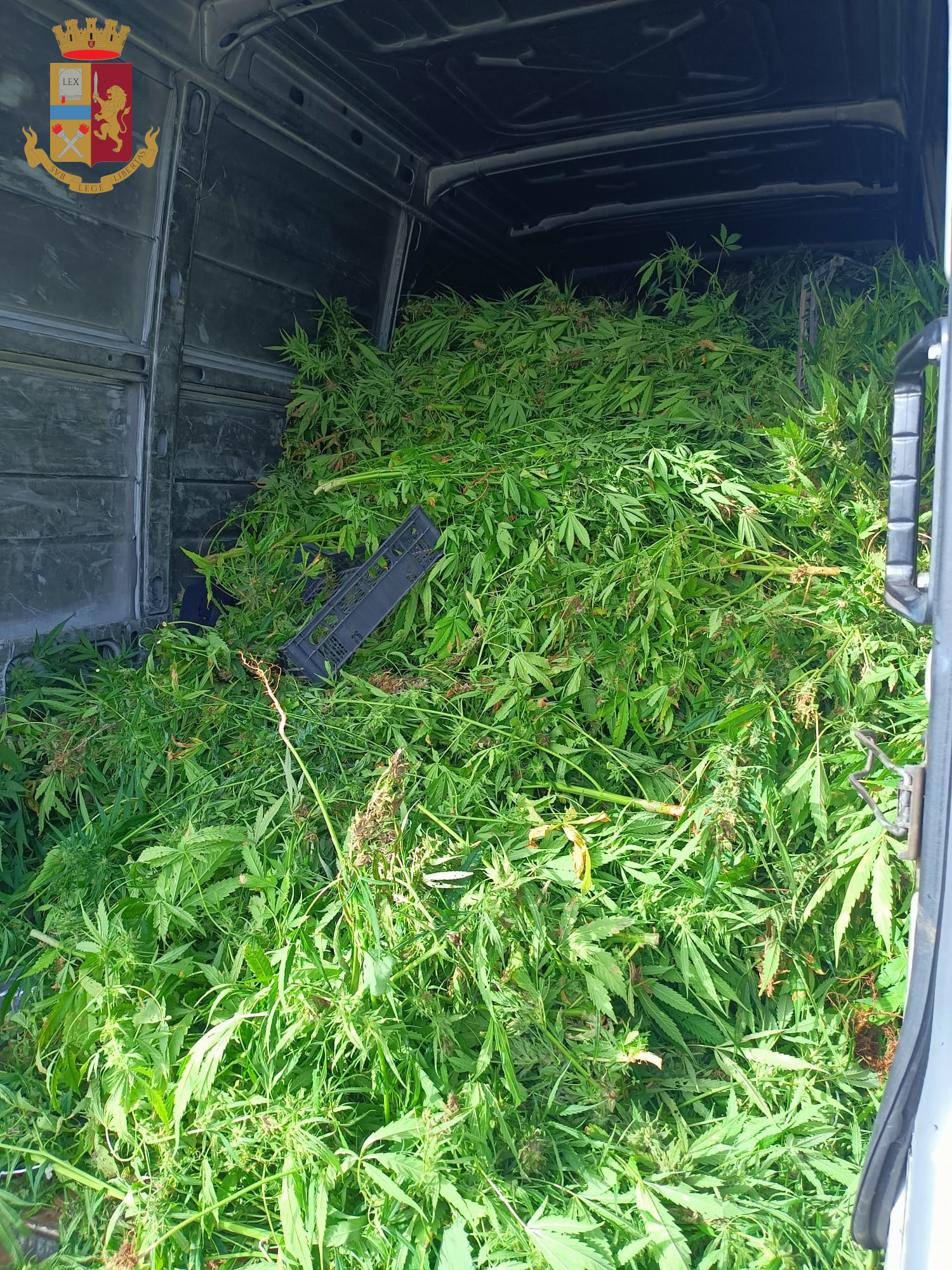 L’appezzamento di terra era composto da filari rivestiti superiormente e lateralmente con dei teli di plastica, era dotato di impianto di irrigazione e di energia elettrica, accanto era parcheggiato un furgone all’interno del quale c’era una busta contenente un grande rotolo di pellicola trasparente e numerosi sacchi in plastica: materiale che sarebbe stato probabilmente utilizzato per confezionare le piante prima di trasportarle nel luogo di stoccaggio.