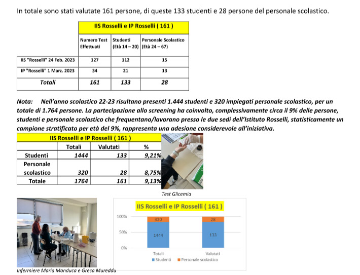 l’Istituto, la prof.ssa Sabrina Vento insieme al Presidente SIPOD, consigliere direttivo FederDiabete Lazio, Dr. Alessandro Tempesta, divulgatore scientifico, hanno organizzato due giornate di screening che si sono svolte il 23 Febbraio e 1 Marzo 2023.