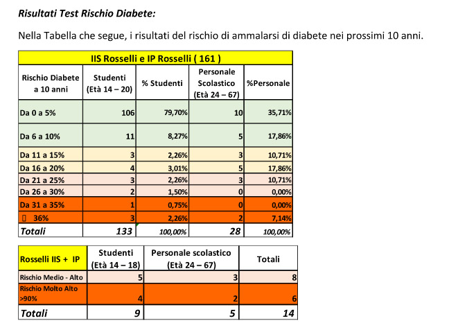 Screening per il calcolo del rischio Diabete e Obesità all'Istituto Rosselli di Aprilia: emersi 14 casi a rischio