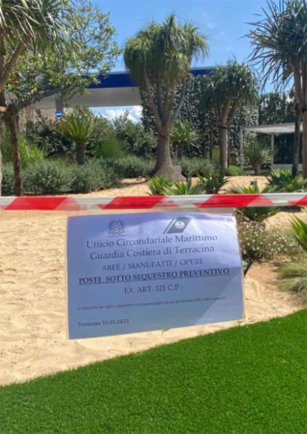 “L’area sottoposta a sequestro si trova sul tratto orientale del litorale terracinese. All’esito del controllo, svolto anche alla presenza di personale tecnico dell’Amministrazione Comunale, - si legge nella nota della Guardia Costiera - il personale operante ha riscontrato sia l’occupazione di un’area demaniale non coperta dal titolo concessorio con manufatti amovibili, sia sostanziali mutamenti all’interno dell’area in concessione non autorizzati con la licenza suppletiva richiesta dall’art. 24 del Codice della Navigazione. L’area difforme, in particolare, a differenza di quanto indicato nelle planimetrie annesse alla concessione, era stata riconfigurata con mutamento della destinazione d’uso.
