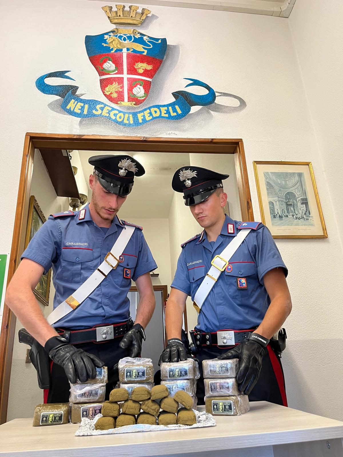 Insospettiti dall’atteggiamento dei due ed anche dai loro precedenti, i Carabinieri hanno perquisito la vettura; all’interno vi erano occultati 6 chili e mezzo di hashish, suddivisi in panetti da 100 grammi. I due stranieri sono stati ammanettati e condotti in carcere a Velletri. La droga è stata posta sotto sequestro.
