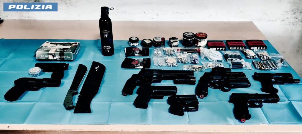 Il proseguo dell’attività ha poi consentito di accertare come il destinatario della misura di prevenzione, presso la quasi totalità di immobili poi sequestrati, detenesse pistole e carabine ad aria compressa, alcune delle quali predisposte per un pronto utilizzo, e relativo munizionamento in biglie d’acciaio. Tutto il materiale rinvenuto, comprensivo di un totale di 8 pistole e 1 carabina, è stato pertanto acquisito dai poliziotti e sono in corso accertamenti diretti a verificarne eventuali alterazioni.