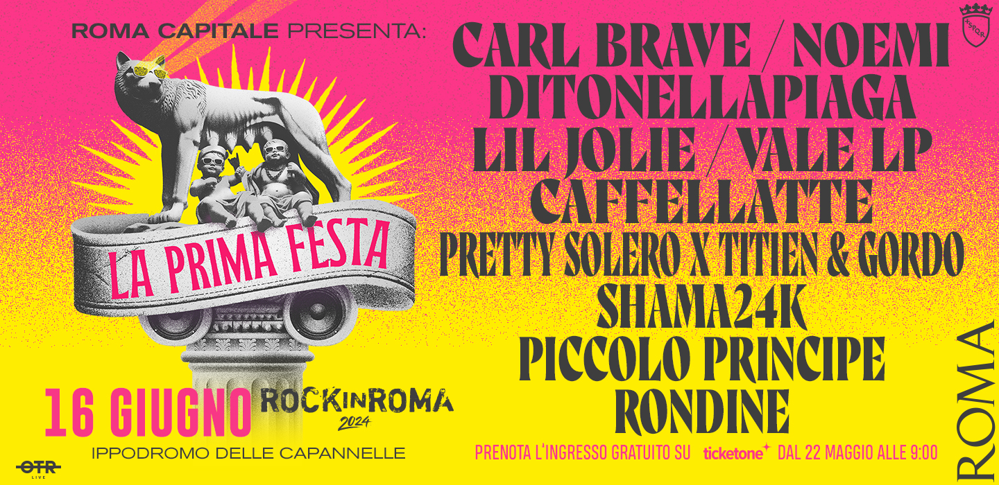 Si chiude la prima settimana di eventi al “Rock in Roma 2024”: questa domenica 16 giugno “La Prima Festa” all’Ippodromo delle Capannelle. Tra gli ospiti Carl Brave, Noemi e Ditonellapiaga. Si tratta d...