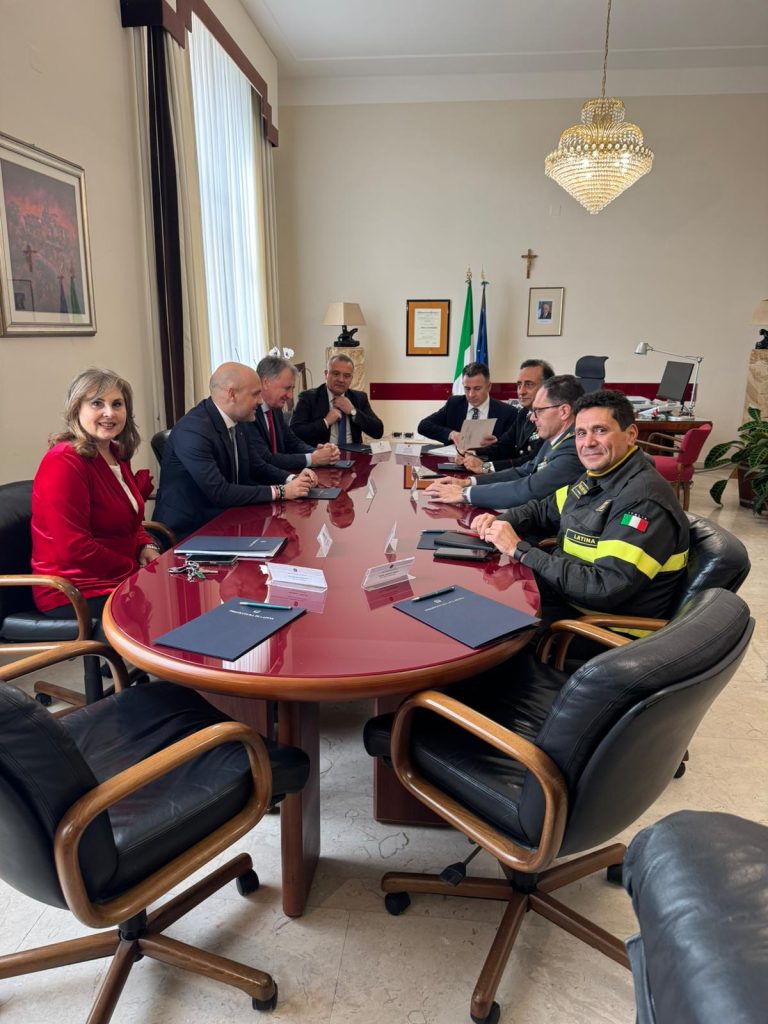 Sicurezza in provincia di Latina. Visita in Prefettura del Sottosegretario Emanuele Prisco. Affrontato anche il “caso Aprilia” e l'imminente apertura del Commissariato di Polizia. Questa mattina in Prefettura una riunione, presieduta dal Prefetto Vittoria Ciaramella, alla presenza del Sottosegretario di Stato al Ministero dell’Interno, l’Onorevole Emanuele Prisco, del Presidente della Commissione Bilancio dei Senato, Nicola Calandrini, e dei responsabili provinciali delle Forze di Polizia e dei Vigili del fuoco.