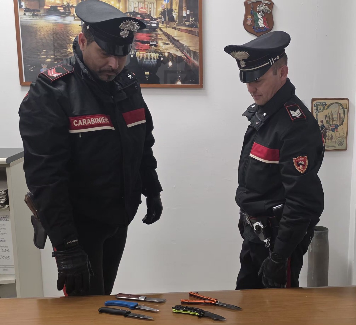 L'attività di controllo su strada ha portato inoltre alla denuncia di diverse persone per detenzione abusiva di oggetti atti a offendere. Nello specifico, quattro uomini sono stati trovati in possesso di coltelli - dei quali tre a serramanico e uno a farfalla - durante i posti di controllo: si tratta di un minorenne di 17 anni residente ad Anzio, un 46enne anch'egli di Anzio, un 53enne residente a Succivo, e un 32enne residente ad Ardea.