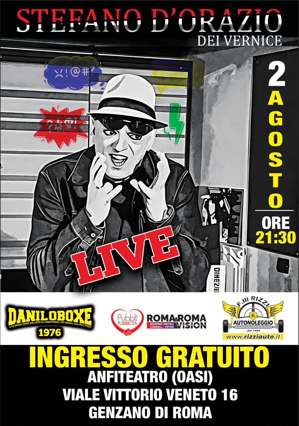 Un concerto molto atteso si terrà a Genzano di Roma sabato 2 agosto: sul palco dell'Anfiteatro di viale Vittorio Veneto ci sarà Stefano D'Orazio dei Vernice. L'appuntamento è previsto a partire dalle 21.30. L'ingresso è gratuito.