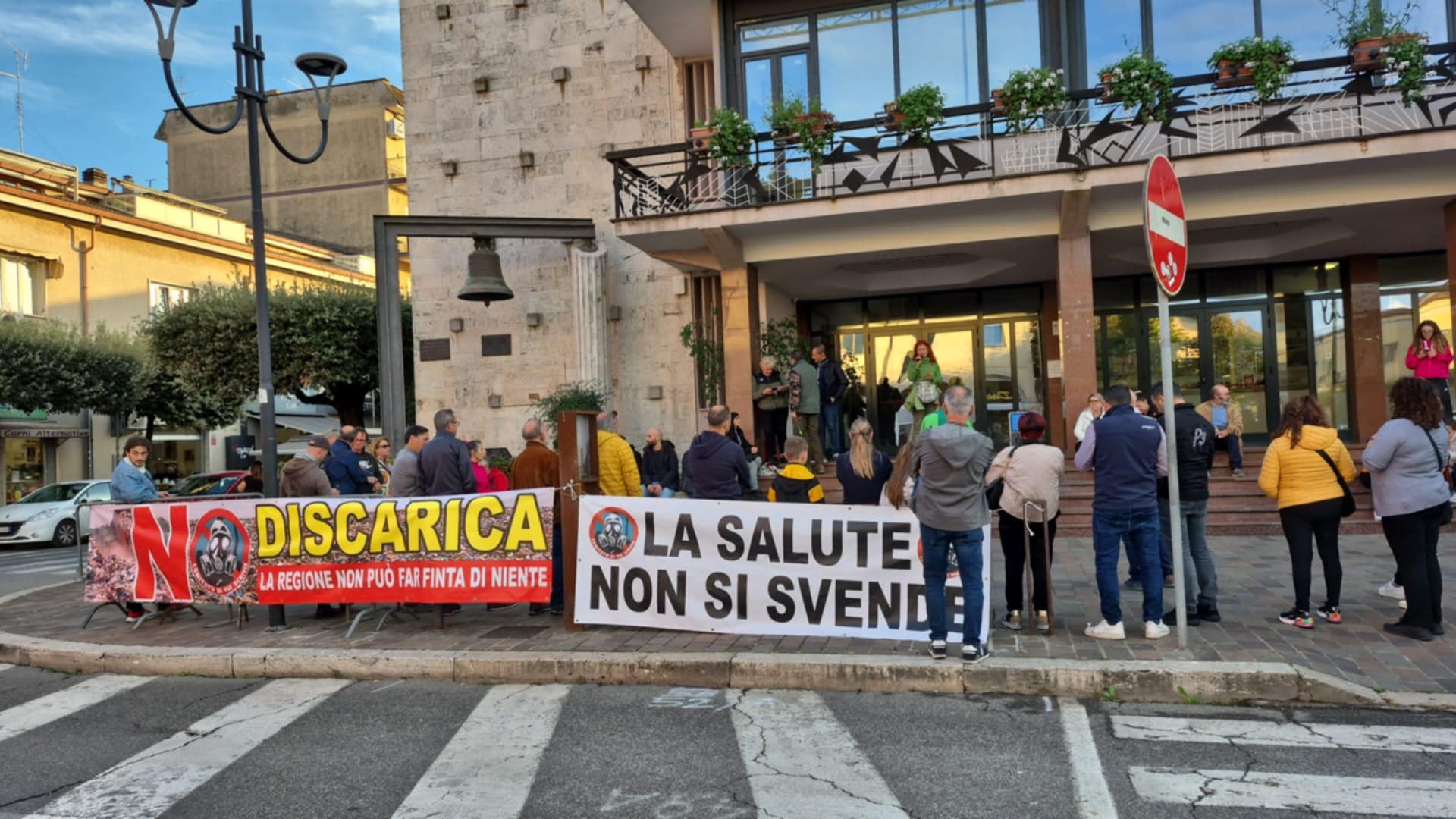 Stop ai lavori per la discarica, ad Aprilia ennesimo sit-in pacifico in Piazza Roma, sotto al Municipio.