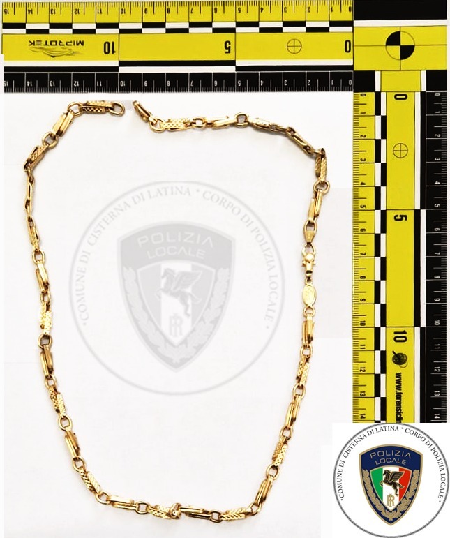 La collana in oro massiccio, del valore di circa 4.000 euro, è stata sottoposta a sequestro e sarà restituita al legittimo proprietario.