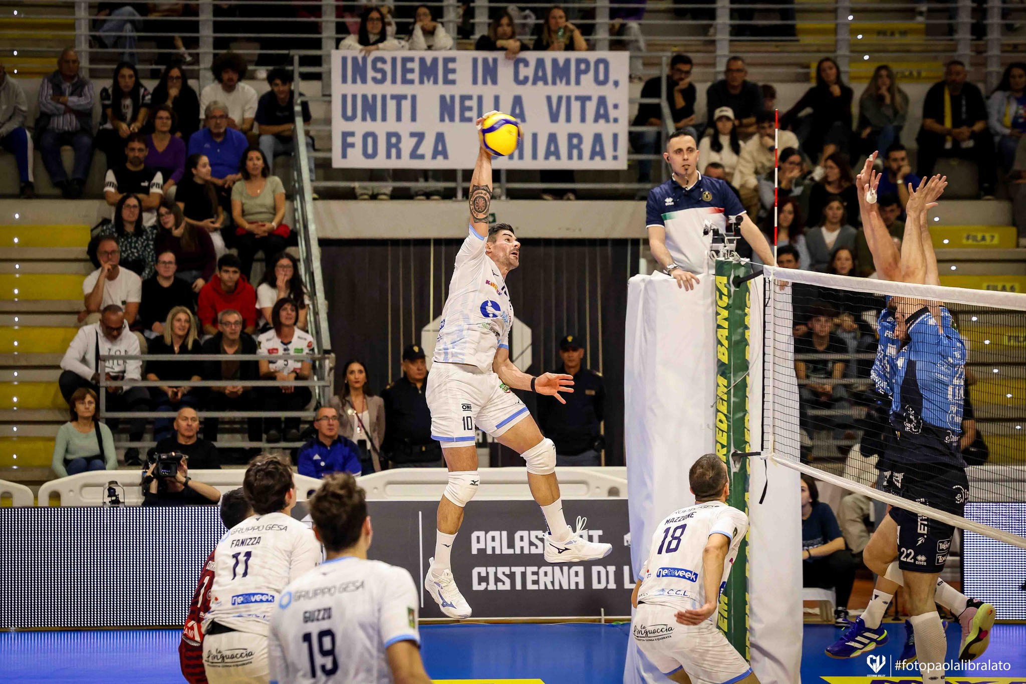 Concentrazione e coraggio, erano i diktat del pre-partita: fondamentali per giocarsela fin dall’inizio contro i campioni d’Italia dell’Itas, scesi in campo con gli ex Ramon e Faure nel sestetto di partenza, insieme a Michieletto, Bartha, Sbertoli, e Flavio. Dall’altra parte Morato ha schierato in partenza Plak, Mazzone, Fanizza, Lanza, Guzzo e Bayram.