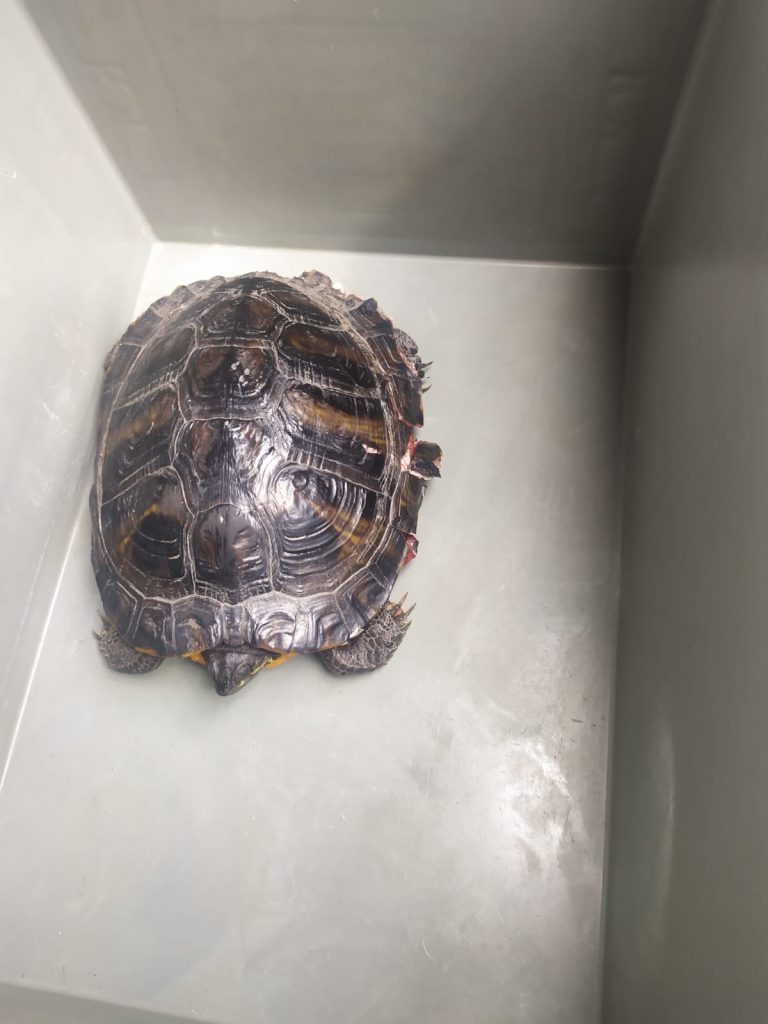 Tartaruga ferita salvata dalla Polizia Stradale di Latina