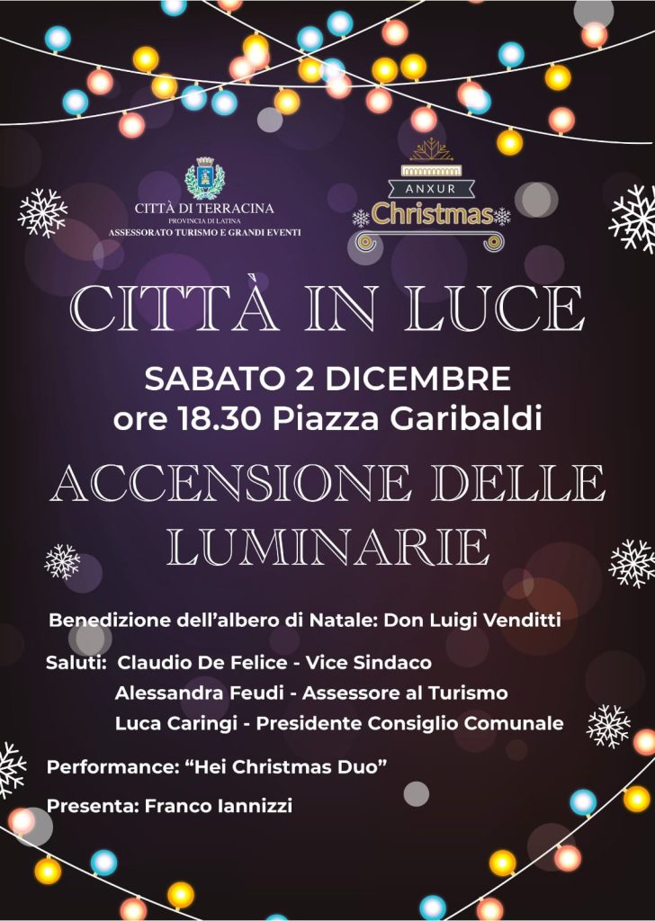 La Città in Luce è solo il primo degli eventi della stagione delle feste, “Anxur Christmas”, con un programma pieno di sorprese e ricco di appuntamenti a partire dal Villaggio di Babbo Natale che aprirà ufficialmente i battenti l’8 dicembre.