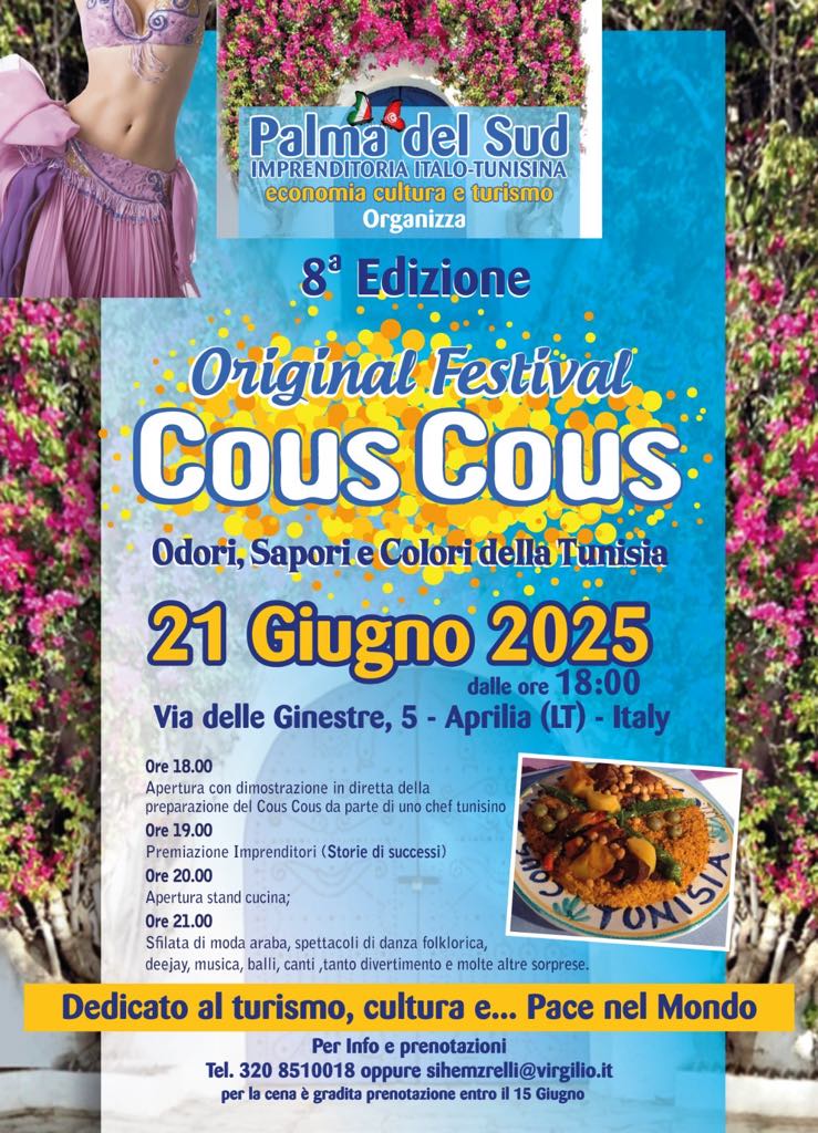 Torna ad Aprilia l’“Original Festival Cous Cous: odori, sapori e colori della Tunisia”.