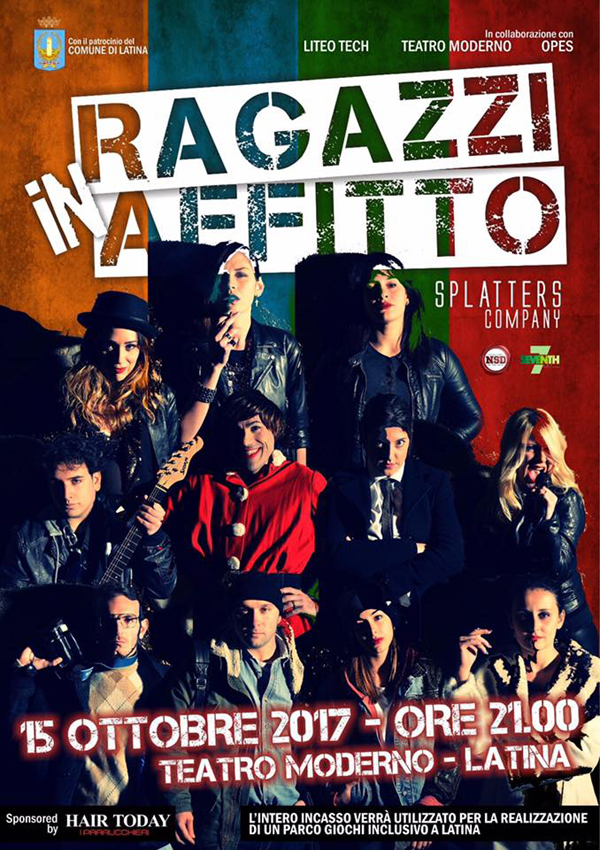 Tornano in scena i ragazzi della Splatters Company con il musical “Ragazzi in affitto”. L’appuntamento è per domenica 15 ottobre alle 21.00 al Teatro Moderno di Latina. L’intero incasso dello spettacolo sarà devoluto alla realizzazione di un parco inclusivo in una zona della città scelta dall’Amministrazione Comunale.