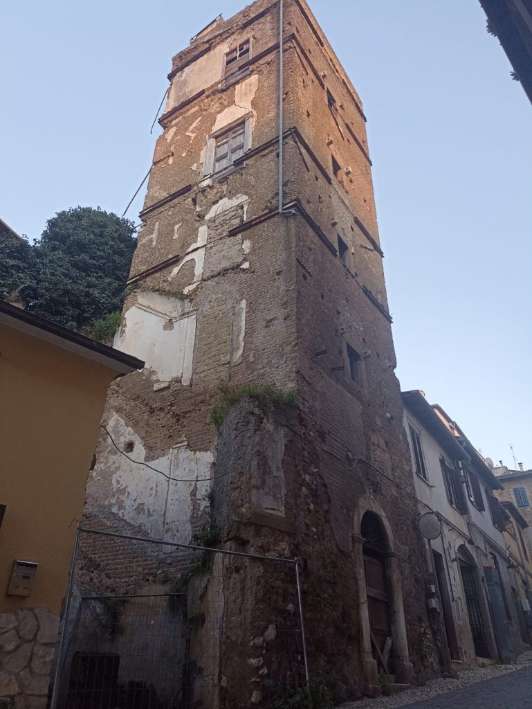 La torre pericolante si trova in via Accrocca, a Cori Valle. Appena si accede in città si nota subito: svetta tra le case, ma è in uno stato di estremo degrado. Nel 2008 il sindaco di allora, Tommaso Conti, temendo per l’equilibrio statico della struttura incaricò l’avvocatura comunale di proporre una causa civile per obbligare la proprietà a metterla in sicurezza: il Tribunale ordinò l’esecuzione dei lavori di messa in sicurezza e la proprietà procedette a far installare un ponteggio. Poi però i lavori si sono fermati, la proprietà non pagava l’affitto dell’impalcatura. L’amministrazione comunale nel contempo si occupò di segnalare tutto anche alla Soprintendenza per i Beni Ambientali ed Archeologici del Lazio e alla Procura di Latina. Poi più nulla. "