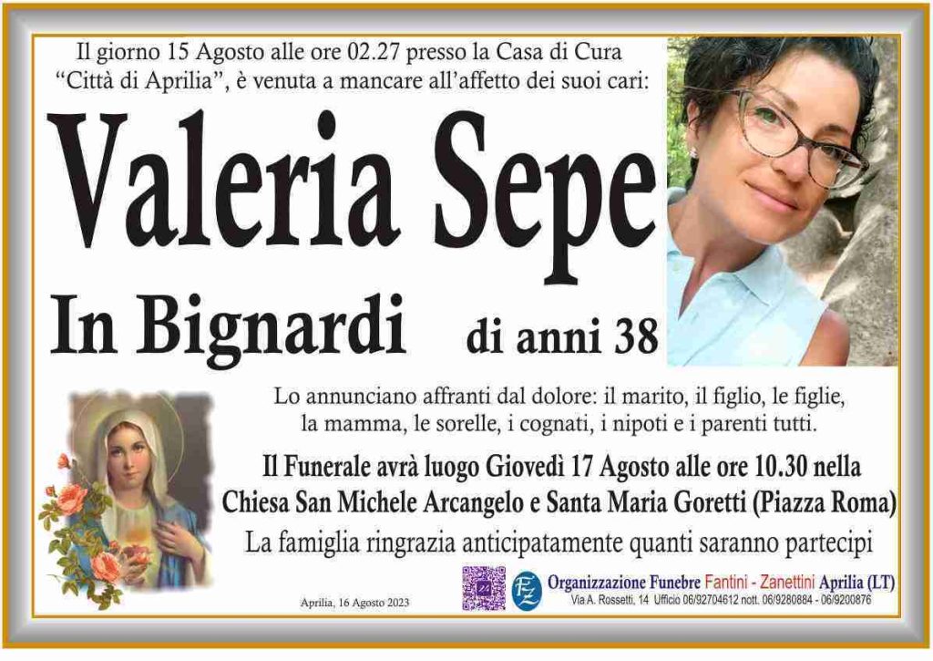 Ad Aprilia un’altra vittima della strada: si tratta di Valeria Sepe, 38 anni, deceduta ieri notte dopo un incidente autonomo avvenuto alla rotonda di via Aldo moro, verso il quartiere Montarelli. La malcapitata era in auto con la figlia quando ha perso il controllo del mezzo – forse per un malore – ed è finita contro un albero. Sul posto il 118 che ha tentato di salvarla senza riuscirci. Il decesso sarebbe avvenuto presso la clinica cittadina. La 38enne lascia altri due figli. Sul posto anche i carabinieri. I funerali sono previsti domani mattina alle 10.30 presso la chiesa di San Michele in piazza Roma.