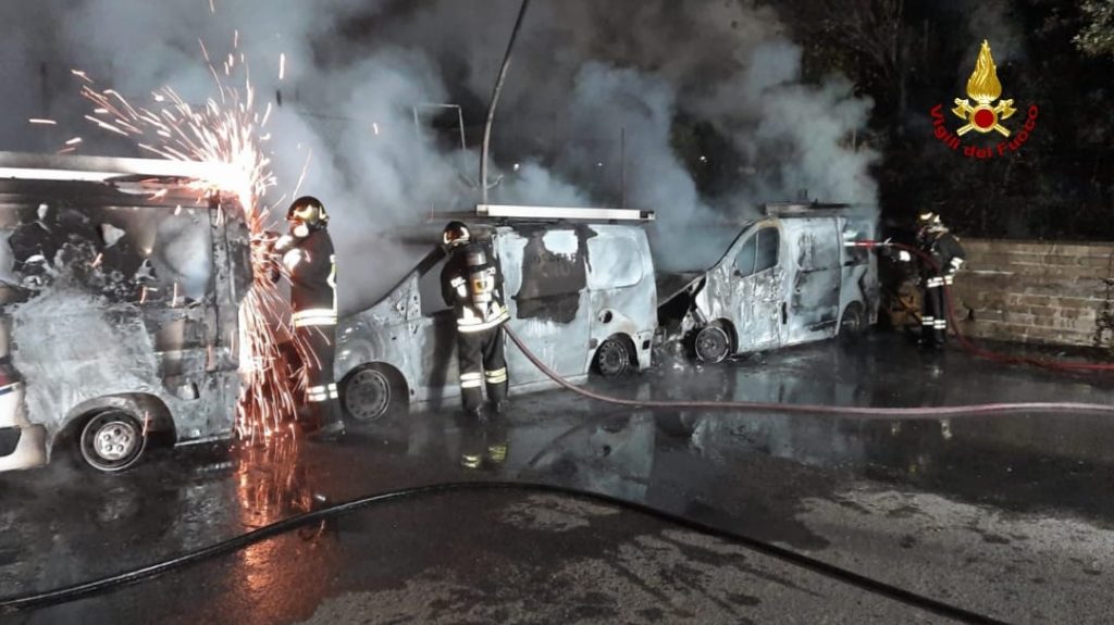 Tre furgoni a fuoco nella notte a Cisterna