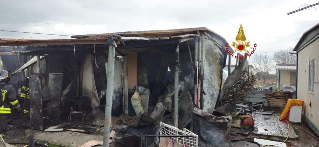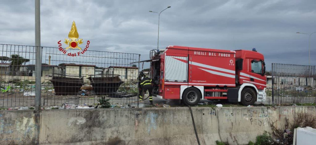 Tre moduli abitativi in fiamme all’interno del Campo Nomadi di Castel Romano: 3 persone lievemente ustionate.