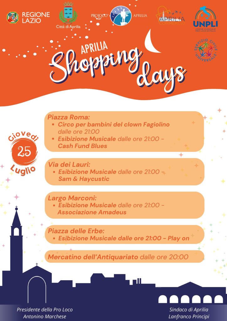 Ultime due serate di Shopping Days ad Aprilia per questa edizione 2024 organizzata dalla Proloco e dal Comune.