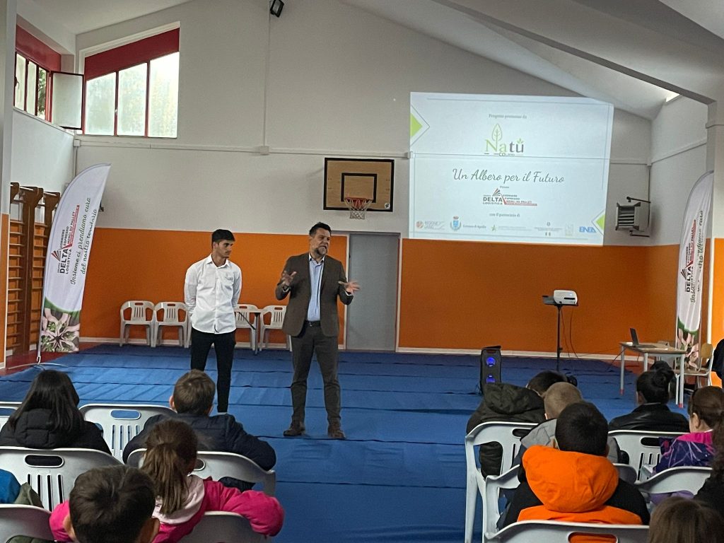 Aprilia - La piantumazione di nuovi alberi per rendere migliorare l’estetica delle aree urbane e contribuire a ridurre le emissioni di C02. Questo l’obiettivo perseguito dall’amministrazione comunale che questa mattina ha partecipato all’evento “Un albero per il futuro”, organizzato da Natu in collaborazione con l’assessorato all’ambiente del Comune di Aprilia, con il patrocinio della Regione Lazio, del Comune di Aprilia, del Ministero dell’ambiente e della sicurezza energetica, il Ministero alle politiche agricole, alimentari e forestali, Anci e l’Agenzia Enea. I bambini della scuola primaria Elsa Morante hanno potuto vivere l’emozione di porre a dimora un nuovo albero l’aiuola adiacente il plesso di via Monte Grappa, un’area che a breve grazie al progetto Natu verrà trasformata in un angolo verde nel centro urbano.