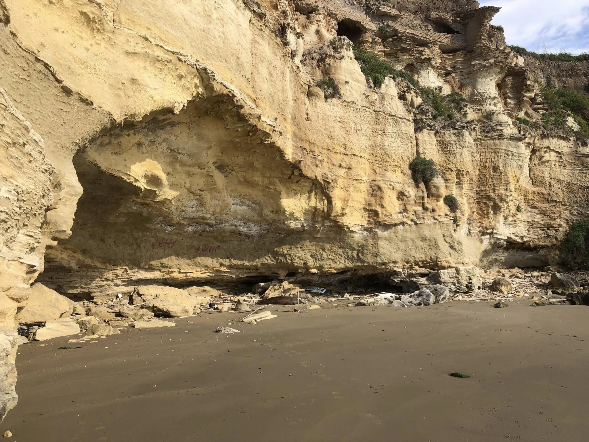 Un delfino in putrefazione sulla spiaggia delle Grotte di Nerone, ad Anzio. -