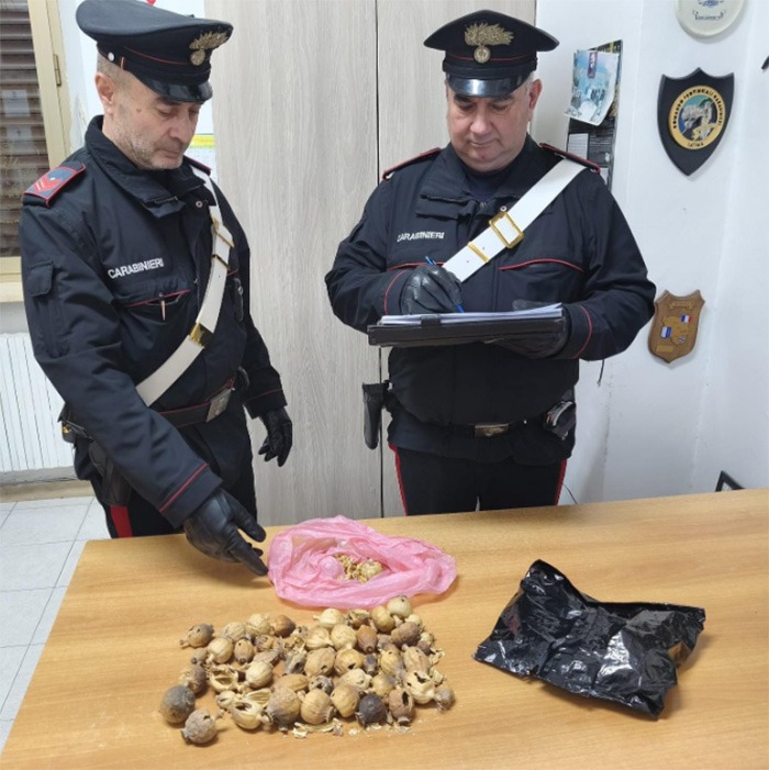 “Nello specifico, i Carabinieri, nell’ambito delle intensificate attività di controllo del territorio finalizzate a contrastare la criminalità comune ed in particolare il traffico di sostanze stupefacenti, hanno sottoposto a controllo l’indagato, mentre viaggiava a bordo di una minicar. L’uomo, durante le verifiche operate dai militari, ha assunto un atteggiamento che ha insospettito gli uomini dell’Arma che hanno deciso di sottoporlo a perquisizione, rinvenendo nella sua persona 1 bulbo di papavero. L’attività di ricerca è stata estesa al veicolo, all’interno del quale sono stati rinvenuti, occultati sotto il sedile, ulteriori 50 bulbi di papavero del peso complessivo di circa 100 grammi.