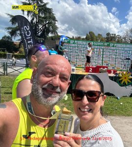 A Frascati in contemporanea si svolgeva l’altra gara, su una distanza più breve ma non meno impegnativa per il suo percorso dall’altimetria davvero varia. Qui erano in tanti, 443 che hanno portato a termine la gara, ed i nostri Emanuele Battaglia che è giunto 8° assoluto e a premio quale 1° nella categoria SM35 con uno splendido 42’24” e Pamela Gabrielli a podio, 3^ donna a tagliare il traguardo, 34^ assoluta con 48’50”.