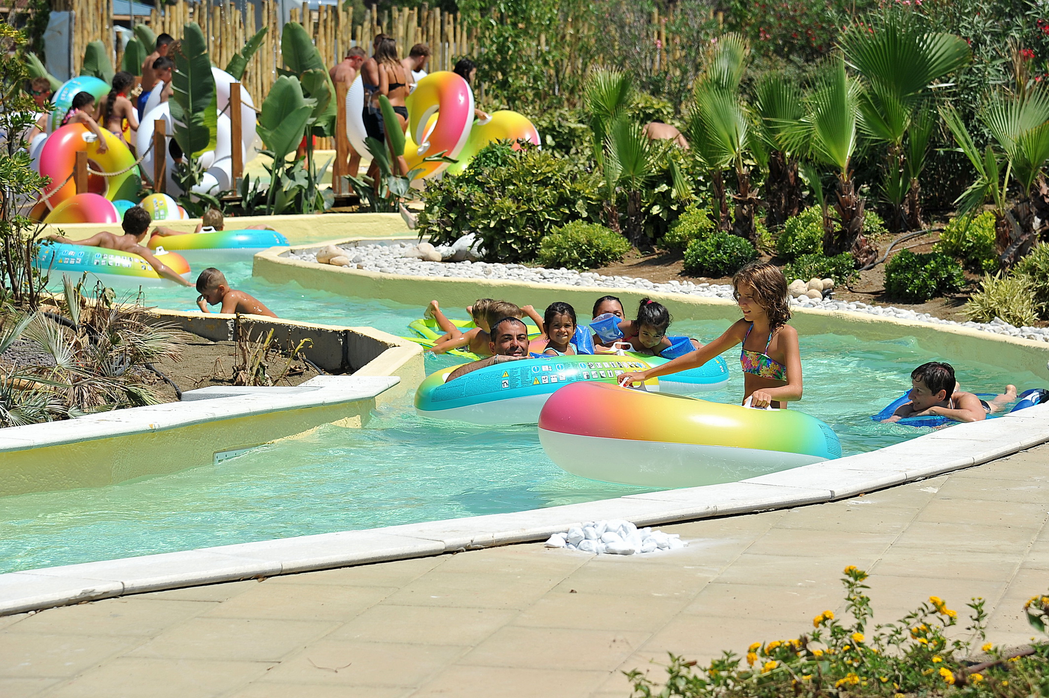 L’Area Vip con ombrelloni e cabanas, i ristoranti a tema, shop e servizi permettono di godersi la giornata.