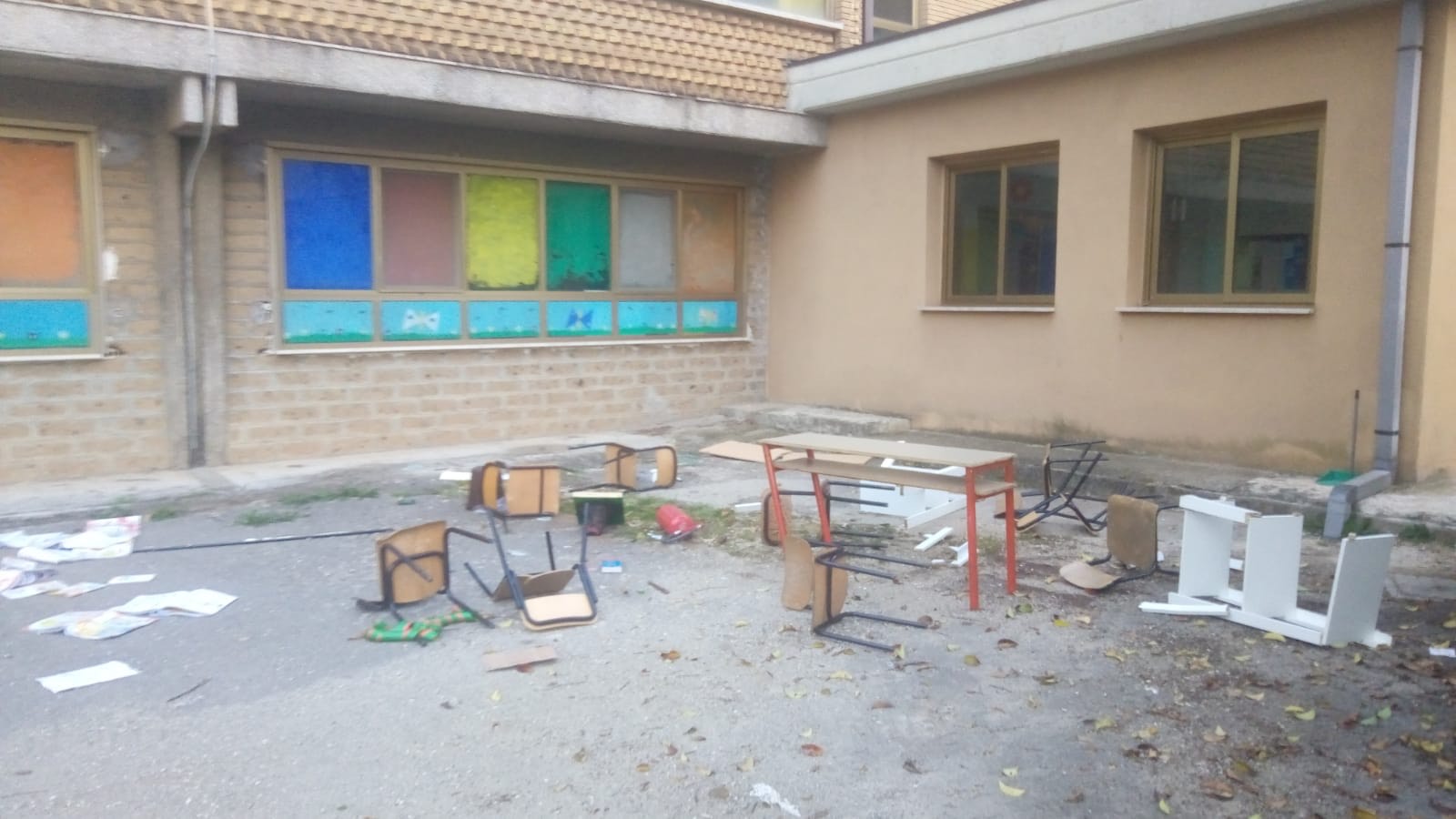 Vandali in azione alla scuola “Giovanni Cena” di Cisterna. Ignoti hanno fatto irruzione in alcune classi, le hanno messe a soqquadro, hanno rotto, tra l’altro, i vetri delle finestre ed i sanitari dei bagni ed hanno gettato nel cortile banchi e sedie.