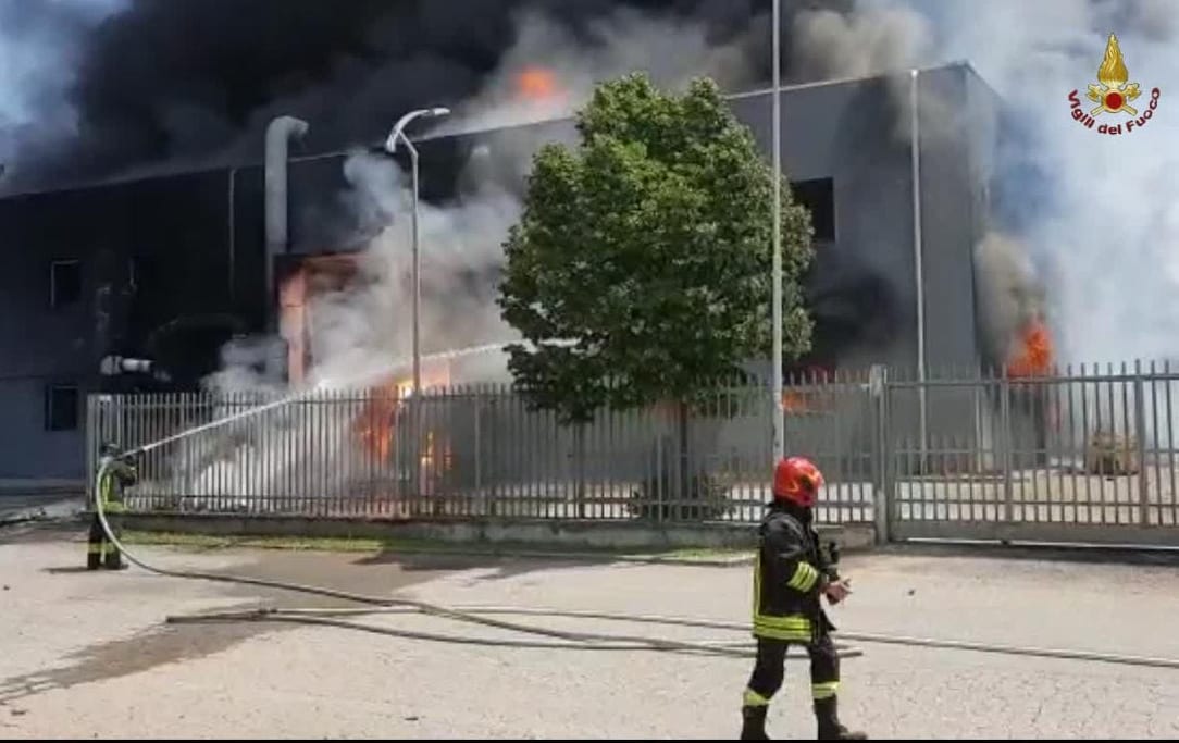 Vasto incendio in un deposito di vernici nella zona industriale di Monterotondo. -