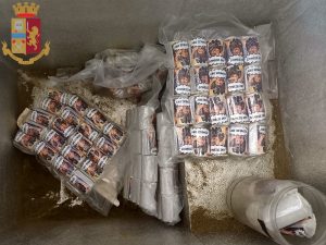 Durante la perquisizione, sono stati rinvenuti oltre 730 kg. di stupefacente costituto da: sostanza vegetale polverosa, sostanza solida di colore marrone, panetti di sostanza solida marrone, estratto vegetale oleoso e frammenti vegetali essiccati.