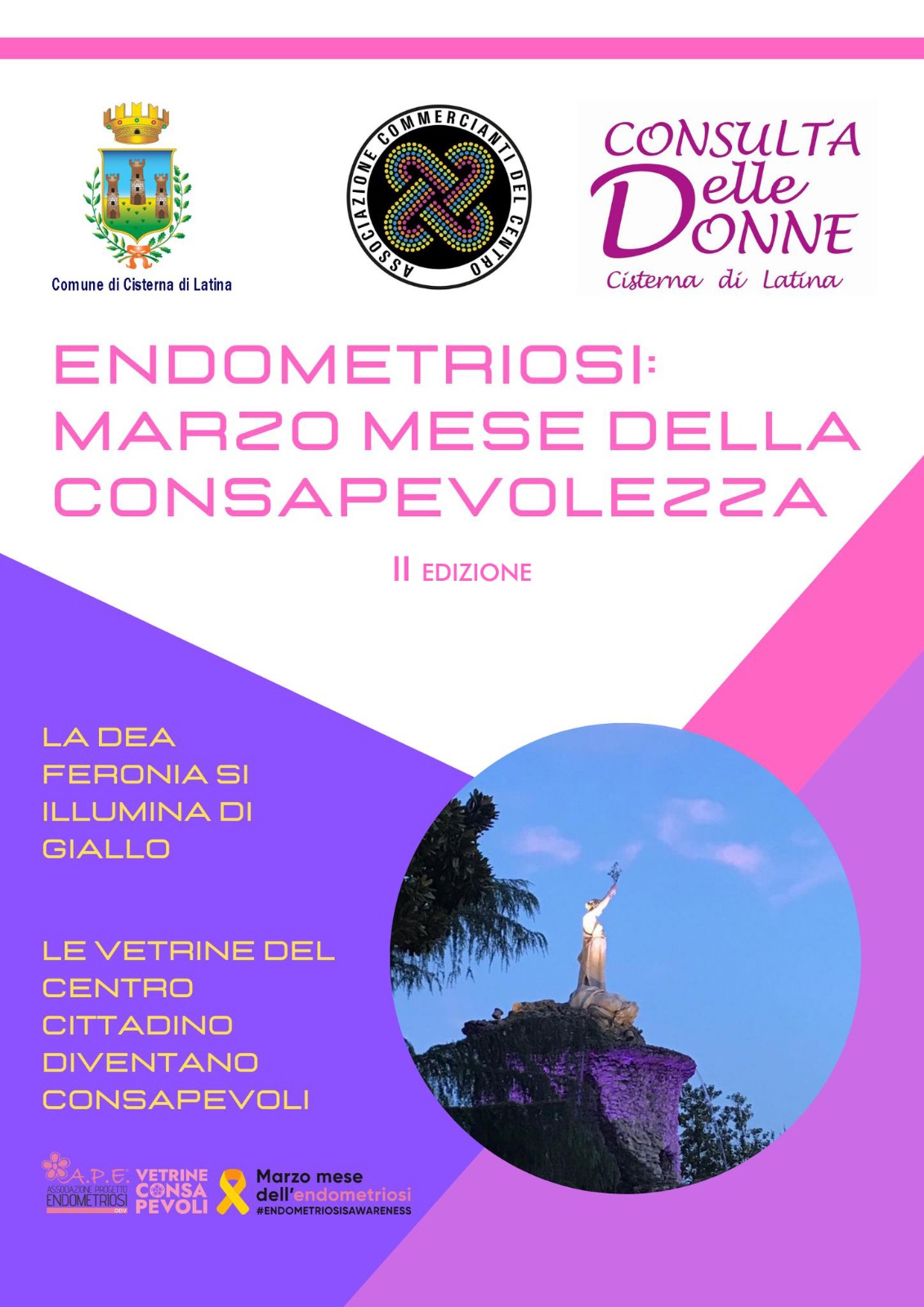 Anche quest’anno la Consulta delle Donne in collaborazione con l’Associazione Commercianti del Centro e con il Patrocinio dell’Amministrazione Comunale di Cisterna, ha aderito al progetto di rilevanza nazionale per la sensibilizzazione sull’endometriosi promossa dall’A.P.E. (Associazione Progetto Endometriosi) per coinvolgere la popolazione a diffondere le corrette informazioni sulla malattia e arrivare a più persone possibili: le “Vetrine Consapevoli”.