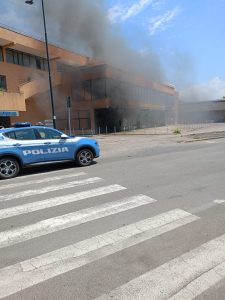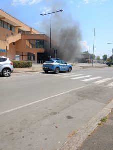 A fuoco le auto comunali nel parco auto di Piazza dei Bersaglieri. Il fumo in poco tempo si è propagato negli uffici comunali.