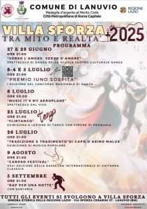 Tutti gli eventi si svolgeranno presso Villa Sforza, in via Sforza Cesarini 37 a Lanuvio.