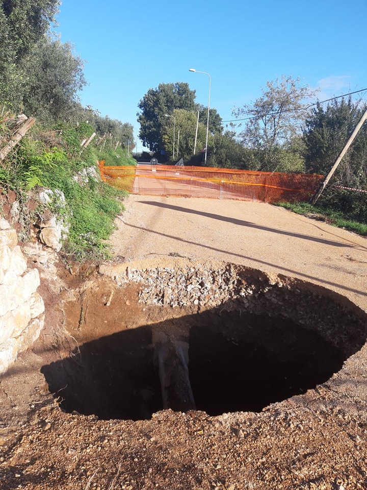 Dai primi rilievi é emerso che la voragine é la conseguenza di perdite dalla condotta idrica presenti sotto la sede stradale, che hanno causato il cedimento dell'intera area anche in seguito alla riparazione delle stesse.