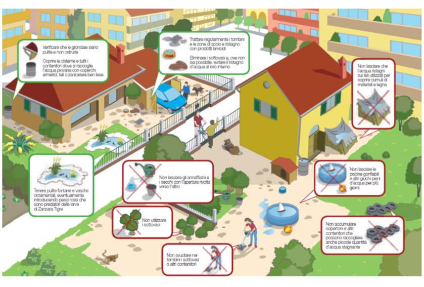 Non lasciare all’aperto oggetti che possano raccogliere acqua piovana