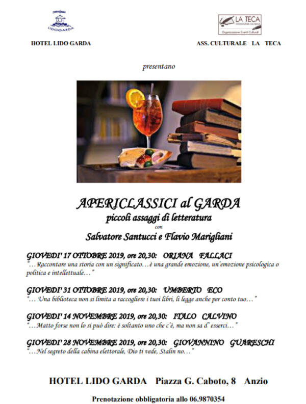 4 grandi della letteratura in 4 serata, ad Anzio gli "Apericlassici al Garda"
