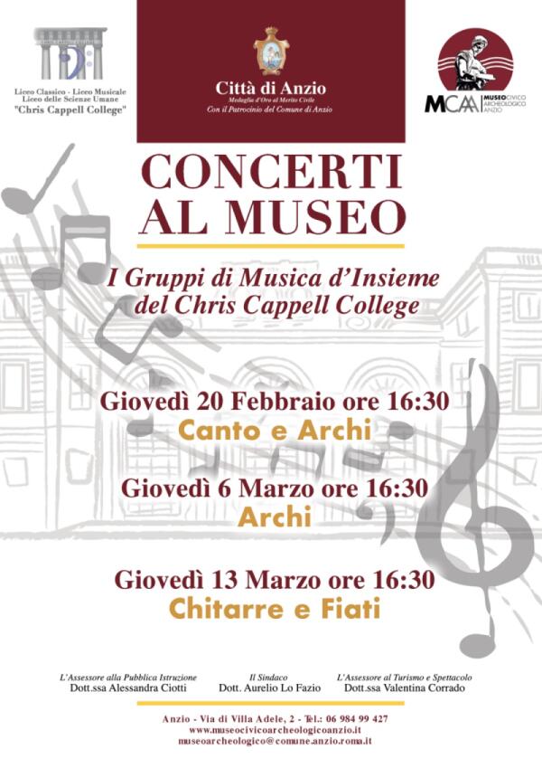 Tornano i “Concerti al Museo” degli studenti del Chris Cappell College di Anzio