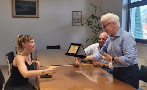L’atleta di Fondi Alessia Pecchia, campionessa italiana di danza sportiva, premiata dal Sindaco Beniamino Maschietto.
