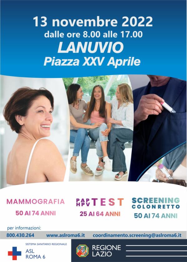 Prevenzione oncologica: questa domenica a Lanuvio giornata di screening gratuita.