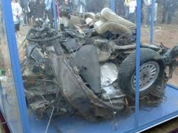 Esposta sotto ai portici di piazza del Popolo la teca con i resti dell'auto della scorta del giudice Falcone, commozione a Latina