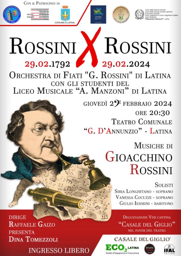 Latina, l’Orchestra di fiati e gli allievi del Manzoni ricordano Gioachino Rossini