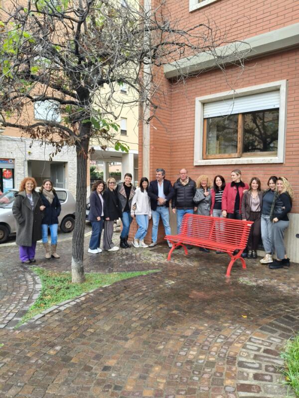 Una panchina rossa davanti la sede dell'Ater di Latina