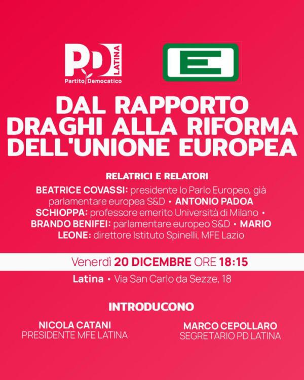 A Latina l'incontro "Dal Rapporto Draghi alla riforma dell'Unione europea"